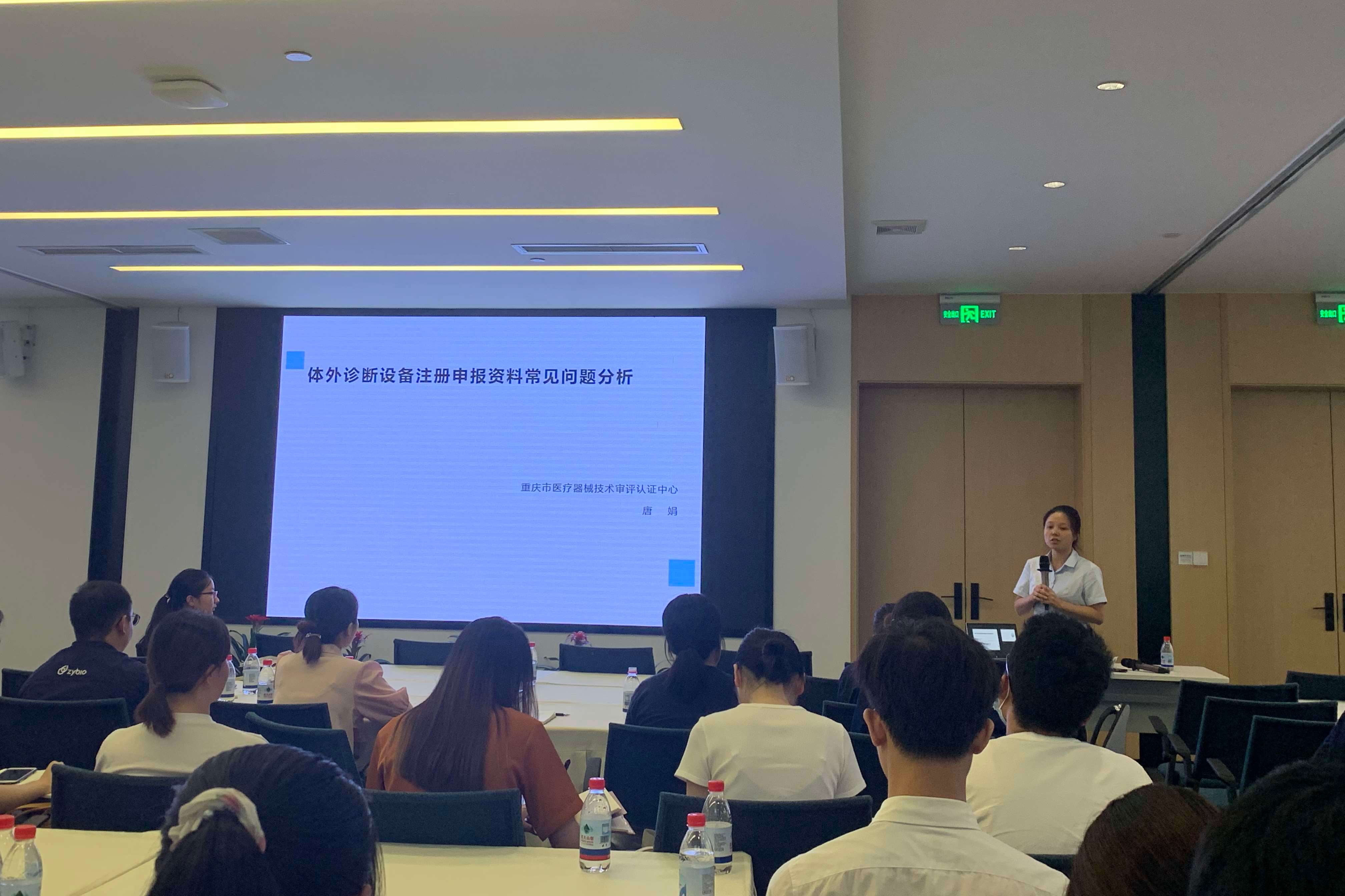 培训会上,重庆医疗器械质量检验中心张占军老师对医疗器械质量抽检程序和常见问题案例进行讲解,指导企业良性发展。重庆市药品技术审评认证中心陈剑老师对医疗器械质量管理体系核查中的重难点及常见问题进行剖析,为企业的生产运营提供指导意见;认证中心吴其静老师对体外诊断试剂分析性能评价要点进行培训;认证中心唐娟老师对体外诊断设备注册申报资料常见问题进行分析,对企业注册申报资料问题给予改进建议。